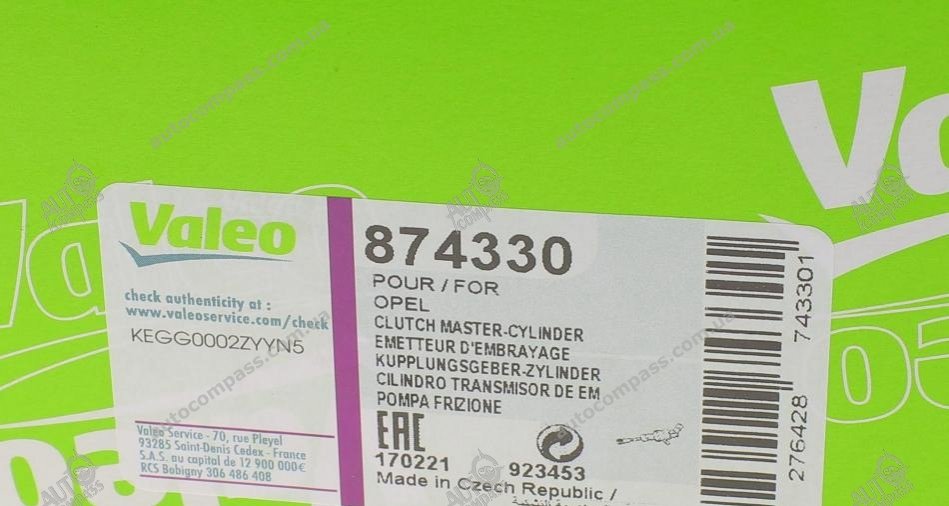 Головний циліндр зчеплення 874330 Valeo