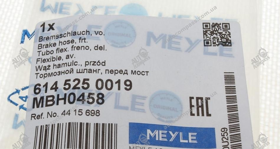 Шланг гальмівний 614 525 0019 MEYLE